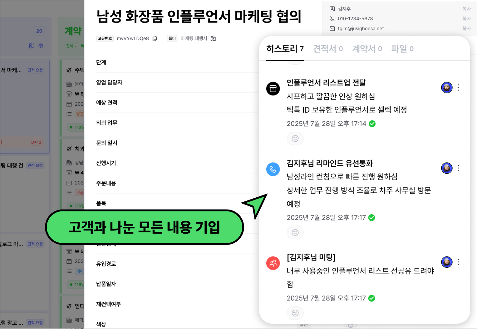 계약만 쌓아두고 영업 히스토리는 남기지 않으면,