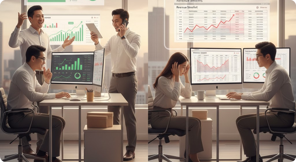 영업팀은 이번 달 역대급 수주를 달성했다며 축제 분위기인데, 재무팀은 정작 들어올 돈이 맞지 않는다며 고개를 가로젓는 풍경. B2B 기업이라면 한 번쯤 겪어보셨을 익숙한 장면입니다. 영업 담당자가 관리하는 엑셀에는 매출 1억 원이 찍혀 있는데, 재무 담당자의 장부에는 부가세 산입 여부나 분할 납부 일정 때문에 전혀 다른 숫자가 기록되어 있기도 하죠.