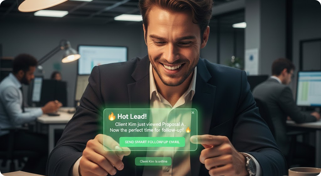 예를 들어, 제안서를 보낸 지 10분 만에 열람 알림이 왔다면 고객이 현재 이 사안을 중요하게 검토하고 있다는 뜻입니다. 만약 며칠 뒤에 다시 열람했다면 결재 단계에 진입했거나 다른 대안과 비교 중일 확률이 높죠. 이처럼 고객의 열람 패턴을 파악하면 "제안서 확인하셨나요?"라는 질문 대신, "검토하시면서 궁금하신 점은 없으셨나요?"라는 훨씬 세련된 접근이 가능해집니다.