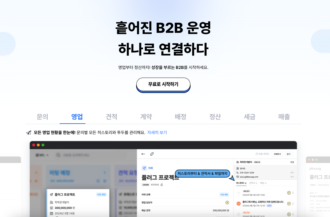 안녕하세요. 영업부터 정산까지 하나로 해결하는 B2B 솔루션 플러그입니다.