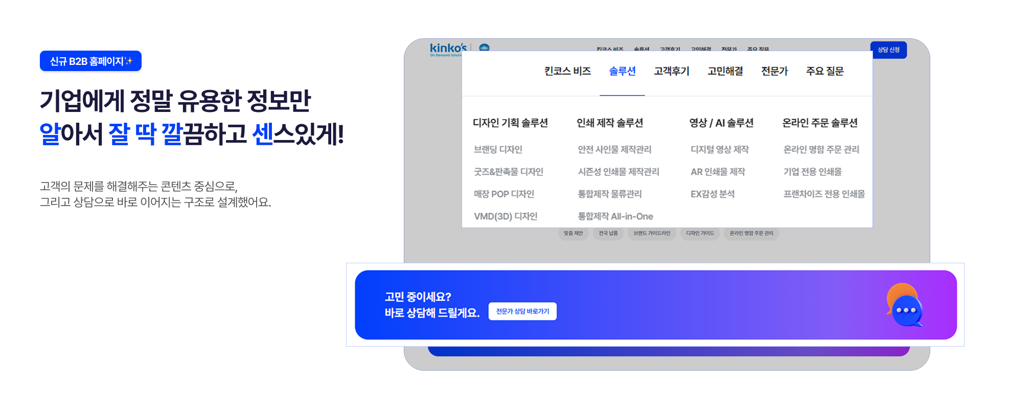 킨코스의 다년간의 비즈니스 노하우와 신규 B2B 사이트 런칭 계기,