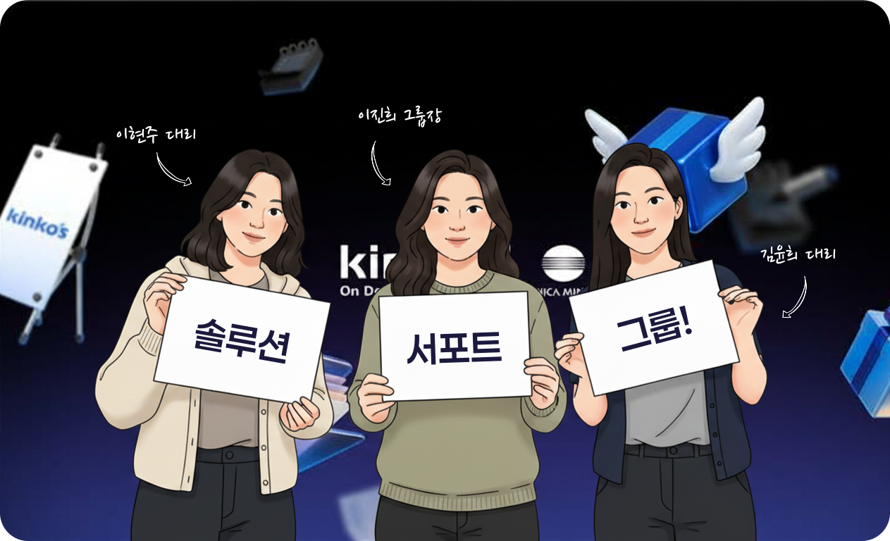 안녕하세요, 킨코스코리아 솔루션서포트그룹 이진희, 이현주, 김윤희입니다.